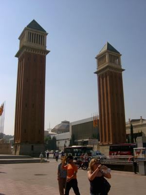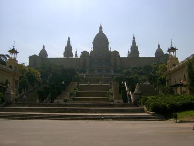 zunächst sind wir durch die zwei "zwillingstürme" auf einer langen allee in richtung des palau nacional de montjuic.