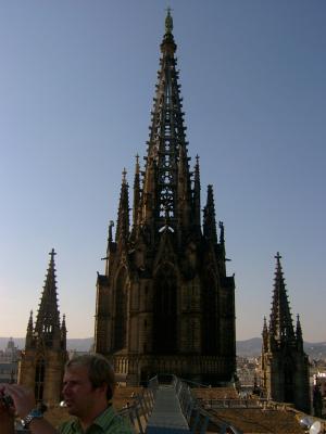 zu fuss gings dann weiter zur kathedrale von barcelona. wirklich beeindruckend von innnen. die inneren seitenmauern sind überall kleinere altäre eingelassen und man kann mit einem lift sogar aufs dach fahren, was wir natürlich gemacht haben.